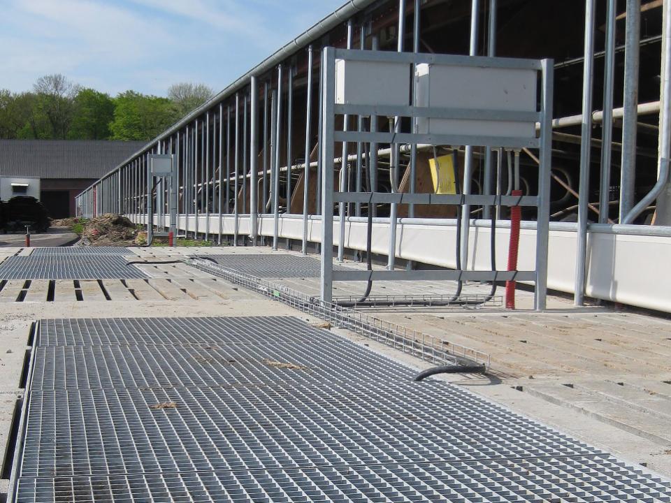 Une pompe immergée de 7,5 kW est installée dans le canal de l’étable des veaux. Lorsque le lisier a atteint un niveau indiqué, un pompage est effectué depuis l’étable du bétail vers le canal dans l’étable du bétail.