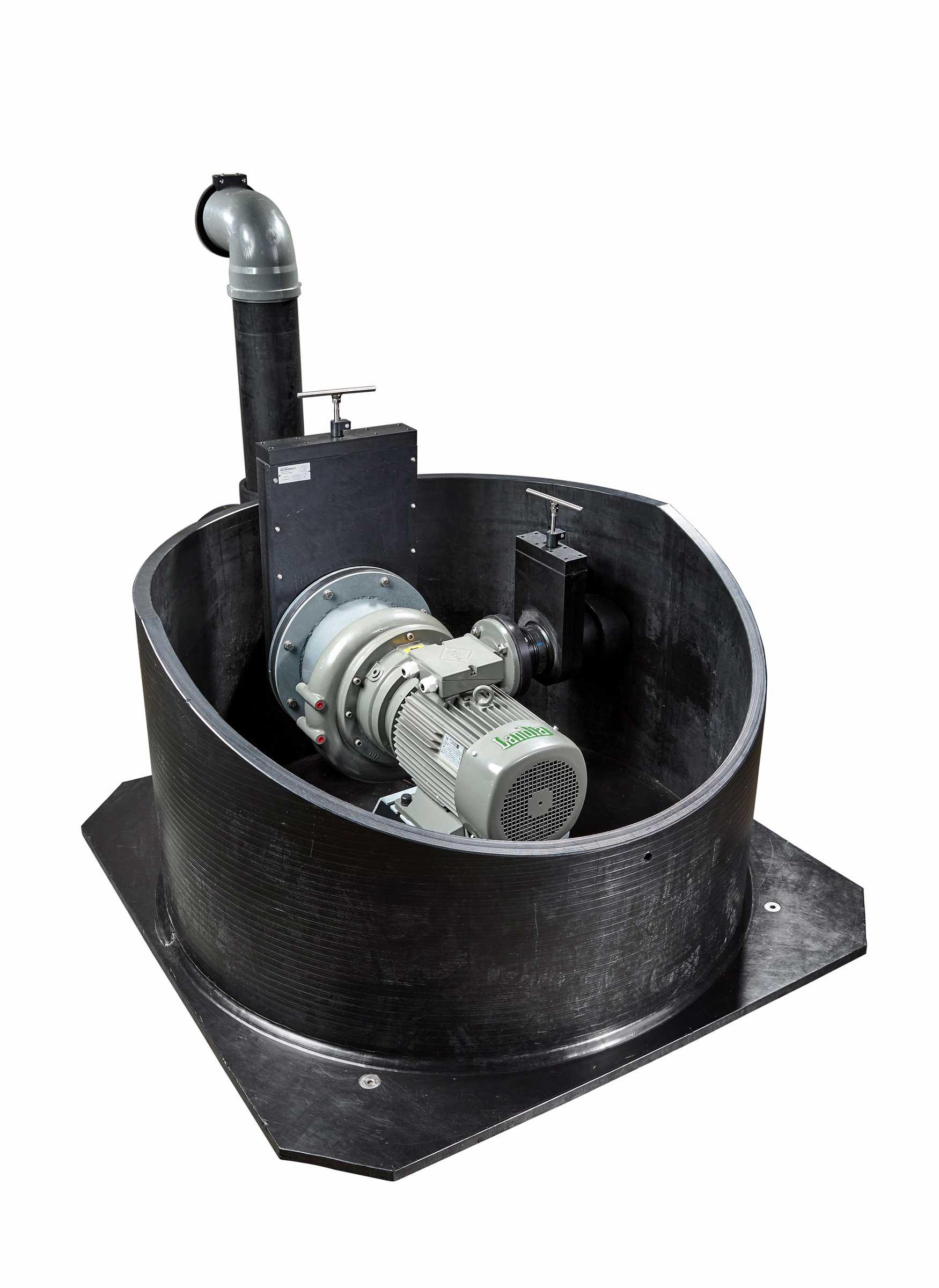 La pompe à installation sèche de Landia augmente l’effet de vide lors de la vidange du canal à lisier par aspiration. Elle convient comme surpresseur pour le pompage de lisier sur de longues distances.